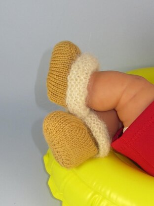 This is my Baby Fur Lined Booties knitting pattern. These booties are really fast and easy to make. They can be worn turned down to really show off the lining or pulled up revealing just a fur trim. They are worked flat in any dk yarn of your choice on 3.5 mm needles and knit entirely in one piece. The knitting pattern provides full instructions for 4 sizes, XS (preemie and tiny baby), S (newborn-3 months), M (3-6 months) and L (6-9 months) with step by step photos to help you with the makeup.