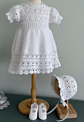 This baby girl’s outfit is designed to fit a 4-6-months-old infant. It is suitable for every-day wear, a blessing ceremony, or a christening service.