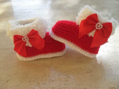 Really Cute Baby Girl Booties - Quick And Easy - Made on Two Needles Either in DK or Aran. This Pattern Makes Three Sizes of Booties 0 to 3, 3 to 6 and 6 to 9 Months.