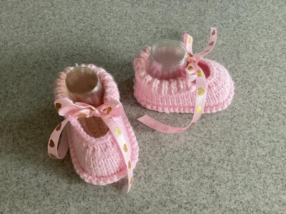 Adorable Quick And Easy Baby Shoes, Can Be Made With Two Laces Or Ribbon Ties. Made On Two Needles In One Piece With Back Seam.