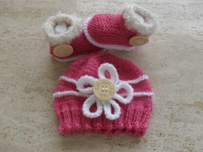 Quick And Easy Really Cute Baby Booties & Beanie Baby Set. This Pattern is suitable for an advanced beginner. It makes Three Sizes 0 to 3, 3 to 6, 6 to 9 Months. All My patterns are made on two needles.