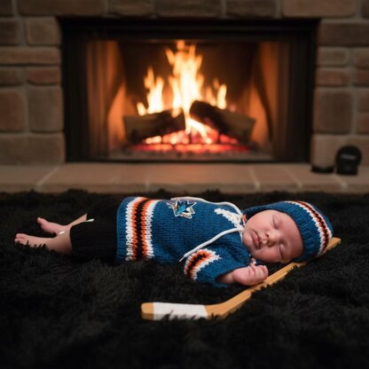 Any hockey fans are going to love this adorable little outfit. Crochet baby San Jose Sharks Set. Instructions are all in US terminology and super easy to do. Pattern includes instructions for all in the pictures, hat, hockey pads, hockey pants and jersey. Super cute and fun to make.
