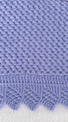 A lovely pattern for beginners to progress to, the main centre blanket is a 4 row pattern repeated and the beautiful border is a 12 row pattern, increasing stitches on every row then casting off stitches to return to the original number. This gives a triangular edging to the blankets.