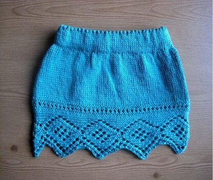 A cute skirt knit in the round from stitches picked up from the hem which is worked separately, flat.