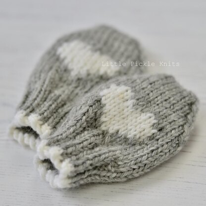 Little Pickle Knits by Linda Whaley. Knit these adorable little heart baby mittens to keep tiny hands warm this winter. Push on mittens without thumbs for easy dressing!