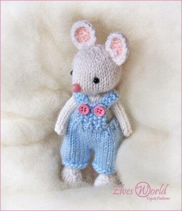 The finished mouse is approximately 5 inches (12.5 cm) tall. Pattern is written in English. The pattern is written as row-by-row description and contains helpful step-by-step photos for important parts. The file is 17 pages long and contains 55 detailed step-by-step photographs along with complete pattern instructions how to make this sweet baby mouse and his breeches. The pattern provides all necessary information to make the toy, and also contains links to useful technique tutorials. This little mouse is knitted in the round − you need to be able to knit in the round (which is actually not very hard and eliminates the need for seaming).