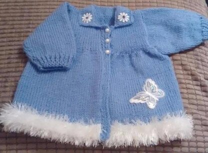 Beautiful coat knitted using either DK or 4ply depending on size required a very simple pattern to follow