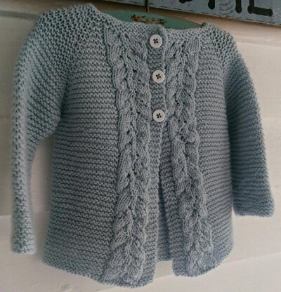 Baby Oakwood is a classic unisex cardigan with simple touches down the front. This is knit top down, with the sleeves knit in the round. The lace is charted and written out.