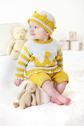 Baby Play Suit, Cardigan, Sweater, Hat and Shorts in King Cole Cottonsoft - 6022 - Leaflet is a Intermediate Knitting pattern by King Cole, available as a Leaflet and includes instructions in English. Super fun to make, this pattern could be your next masterpiece!