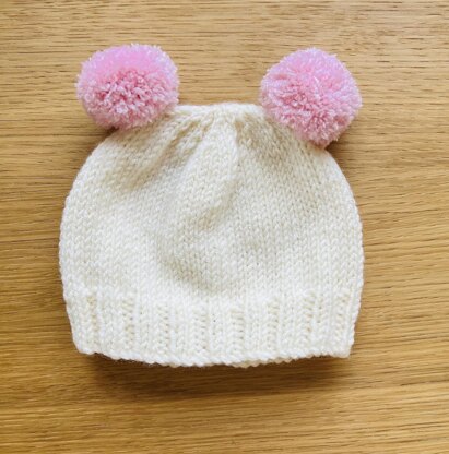 Knit this super cute double pompom beanie hat, using an easy to follow pattern. Quick and easy to knit up. Available in sizes: newborn-3 months & 3-6 months. This beanie is knitted flat on 3.25mm (US 3) and 4mm (US 6) single point knitting needles. It is knitted in DK/8ply yarn (Sylecraft Bambino in Clotted Cream & Soft Pink was used in the photos). This pattern is suitable for a beginner who has mastered the basic knitting stitches, to the more experienced knitter. You will also need a 4mm pompom maker. Matching booties pattern also available in my shop