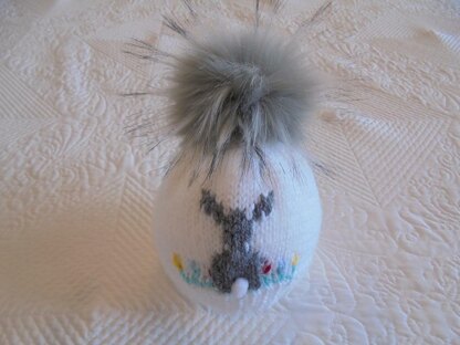 Adorable Bunny In The Meadow Hat. This Pattern is Made on Two Needles There is A Seam. Makes Three Sizes 0 to 3, 3 to 6 and 6 to 12 Months.