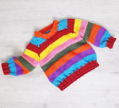 Baby Rainbow stripe top down jumper PDF knitting pattern, 0-2 years
