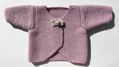 A quick and very easy pattern, perfect for the new to knitting (If you can cast on, knit, increase, decrease and cast off, you can knit this beautiful Baby Rose Bud Cardigan). The pattern is written for 3 sizes to fit chest: 41(46:51)cm, 16(18:20)in. Ages:0-3m(3-6m:6-12m). You will need: 4(4:5) x 50 grams of Baby Merino D.K. or alternatively 2(2:3) x 100 grams of Baby Soft D.K. 1 pair of 4mm(UK8-USA6) Knitting Needles. 1 snap fastener Knit from the bottom up. A perfect cardigan for a New Baby ♥