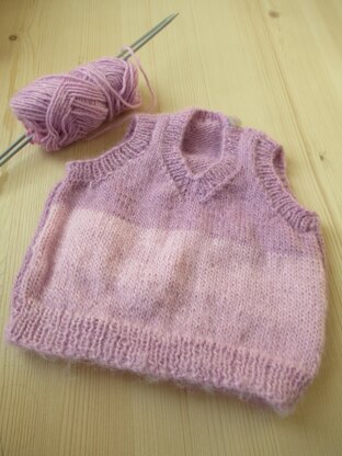 A perfect littlke top for baby without the clutter of sleeves. Knitted in baby soft DK yarn, this is just the thing for spiring and summer days.
