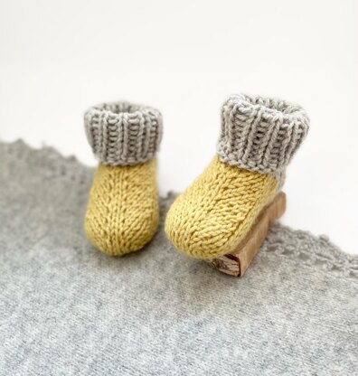 Seamless BABY SOCKS are knitted in the round with short row heel.