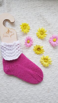 These beautiful baby socks have a nice decorative border that gives a little bit of elegance. It's perfect for any occasion or daily wear.