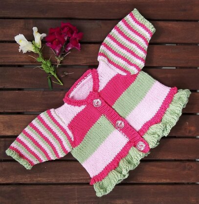 A beautiful knitting pattern for a new born baby girl or toddler, knit in Baby Soft Cotton D.K.Yarn.