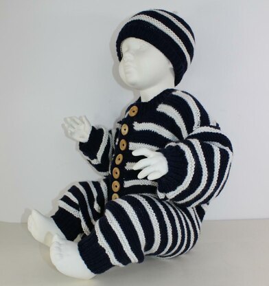This is my Baby Stripe Outdoors Onesie and Beanie knitting pattern. This fabulous outfit is easy to make yet looks stunning. Its worked flat on 4mm needles in any dk (8ply) yarn of your choice. The knitting pattern provides full instructions for 5 baby sizes XS (0-3 months), S (3-6 months), M (6-9 months), L (9-12 months) & XL (12-18 months) and there are lots of step by step photos to help you throughout.