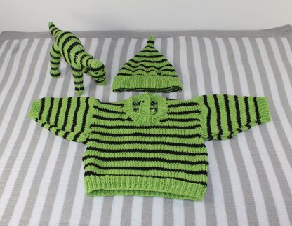 This is my Baby Stripe Sweater, Pixie Hat and Dinosaur Toy knitting pattern. This fabulous outfit is a must for all babies. The knitting pattern provides full written instructions for 4 sizes: XS (0-3 months), S (3-6 months), M (6-12 months) and L (12-18 months), and there are lots of step by step photos to help you throughout. All of the items are worked flat in any dk (8ply) yarn of your choice. This knitting pattern is available to buy here as an immediate pdf download.