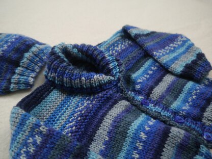 Really easy jacket and hat to knit with self-striping yarn that knits in jacquard stripes all on its own!