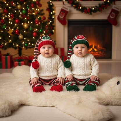 What a year 2020 has been for everyone across the globe, this adorable little twin set is for ending out the year with the cutest of us in 2020 outfits for the holiday season. These are super cute, fun and you can easily make the 20 on each hat into something different if you would like. But all in all, a perfect gift for parents with 2 little ones. The pattern is written in US terminology and is for sizes 6-12 MOnths. Or add whatever year you would like on the hats or leave them without one.