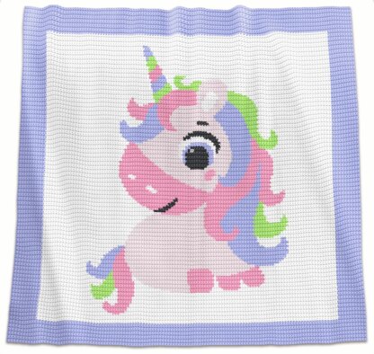 This pattern is available for instant download as a PDF file. It includes basic instructions on how to make a blanket body that are written in both British and American crochet terms. However, to add a design you will need to follow a colour chart that represents an entire blanket body piece.