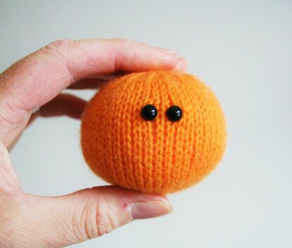 What you will need: 2 knitting needles (US2/2.75mm or as per tension advice), 10g 4ply orange yarn (e.g. Bergere de France Caline 34703 ‘Carotte’), Two black toy safety eyes (6mm), Polyfil toy stuffing, 1 tapestry needle for finishing