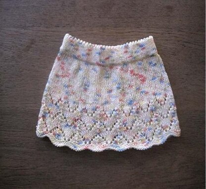 A knee length skirt with a zig-zag lace hem and a picot waistband.