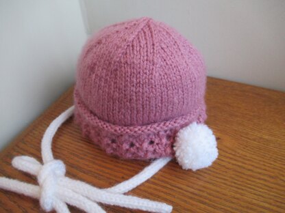 - This beanie can be tied with a knitted I cord, to which you can add bobbles, or just simply use ribbon