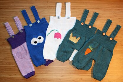 Im zweiten Schritt könnt ihr den Hosenbund in einer zweiten Farbe stricken. Oder ihr wagt euch an eine meiner Variationen – an das Herzchen, den Kleinen Prinz, ans Krümelmonster, Blumenkind oder an die vegetarische Variante mit der Karotte.