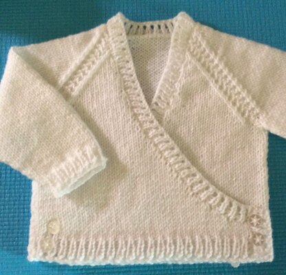 A cosy little wrapped sweater for the newborn up to 3 months. The raglan sleeves make it easier to dress a small baby.