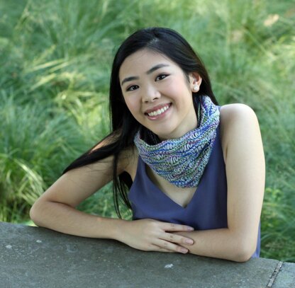 A fun drop stitch cowl. For maximum contrast, use two semi-solid colorways.