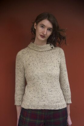 Backbone is a wardrobe staple, a sweater you can live in. I wanted a sweater that served the same function as a sweatshirt, but with an elegant look that could transition from casual to workwear without fuss. As a knitter, I wanted a point of interest to hold my attention while I was knitting, so I added a reverse horseshoe cable pattern down the back, which I think looks like vertebrae. With three quarter length sleeves and a buttoned collar, there’s plenty of style in comfort.