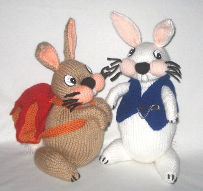 The pattern has instructions for two different heights of rabbits, a backpack and a waistcoat with a pocket for his watch.