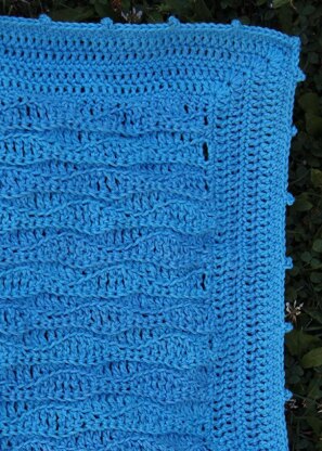 This lovely wavy baby-blanket remembers me to the Hungarian lake Balaton (http://en.wikipedia.org/wiki/Lake_Balaton). With the wavy Balaton-hat (http://www.ravelry.com/patterns/library/balaton-hat) it would be a perfect gift to a baby-shower.