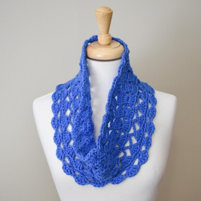 The beauty of the Ballantyne Cowl lies in its symmetry. Tower Stitch shells are worked in both directions from the foundation chain to create a fetching openwork lace, at home over both a denim jacket and a silk blouse.