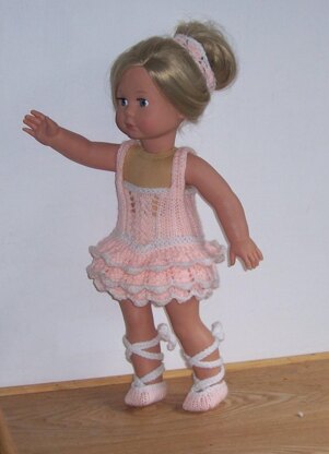 The Outfit comprises of a ballet dress, a bolero to go over the top of the dress, A pair of ballet slippers and a head decoration