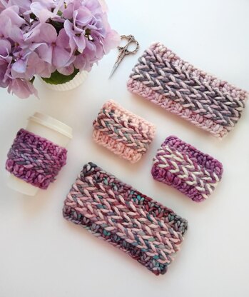 The Banded Braids Headband has eye-catching Latvian braids that make it super warm and cozy. I've also included a FREEBIE pattern, the Banded Braids Cup Cozy. These are the perfect stash busters!!
