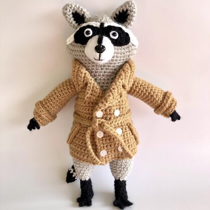 Bandit is your sneaky nocturnal friend with a dirty habit of Dumpster diving. Your trash is his treasure! Dress him in a trench coat (pattern included) so he can do his night prowling incognito.