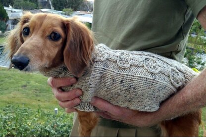My little love and muse, Lena, told me she would like a cable sweater for Christmas this year, so Mommie designed Lena's Banjo Cable Miniature Dachshund Sweater.