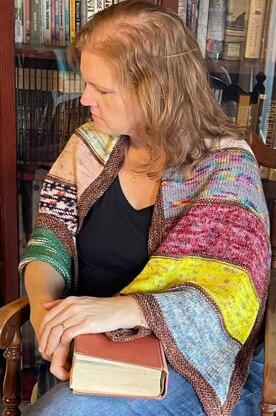 The 2022 Banned Books Advent set was used to design this shawl, reminiscent of a bookshelf with 12 banned books represented on the shelves. The wide garter edging adds to the coziness of the shawl. Didn’t get an advent? Use dk minis, or scrap yarn! You can knit this at any gauge with any yarn, just do a little math.