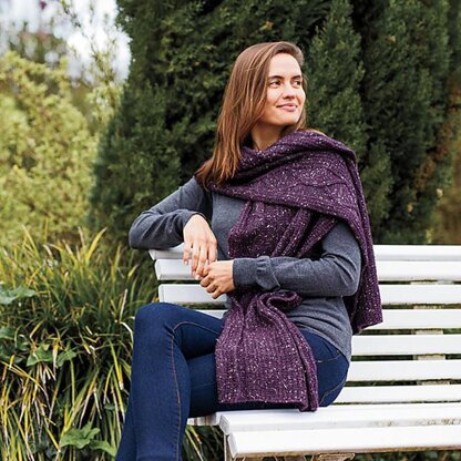 The pattern consists of two cable panels flanked by broken rib stitch with a center panel of broken rib. The cable to the right on the scarf is a repeat of a basic diamond with an elongated rope cable connecting the diamonds. The cable to the left on the scarf has a repeat of the elongated rope cable with one diamond motif at the center of the scarf. The stitch pattern instructions are both written and charted.