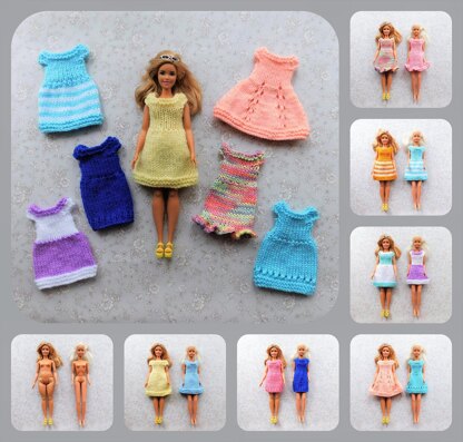 Each dress requires ~ Around 10 - 12g of DK yarn 4mm needles A press stud for fastening Decorations as required ~ ribbon bows, charms, buttons, tiny flowers etc.