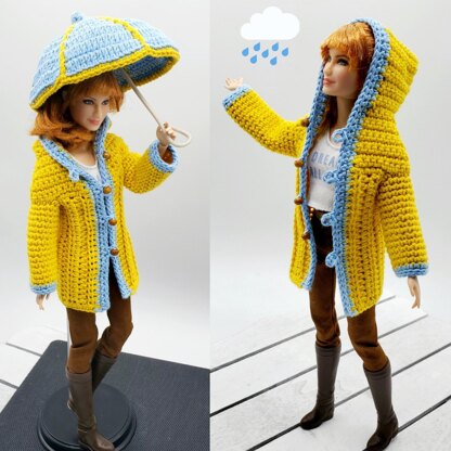 The rainy season is here, so it’s a great time to crochet the raincoat for Barbie. The raincoat is completed in 5 steps: main part, upper part, hood, sleeves, edges & buttons. And while you're at it, make her the umbrella too! This is a crochet project for intermediate skill level.