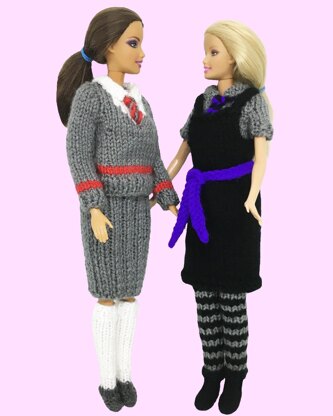 HERE ARE 2 KNITTING PATTERNS FOR SCHOOL UNIFORMS TO FIT BARBIE / ANY 11" TO 12" DOLL