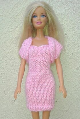 Knit in stocking stitch throughout this is an easy pattern with no additional notions needed. The dresses are worked in one piece to armhole with a back seam. Very easy to children to dress Barbie. I have used eyelash yarn for the white jacket but any fancy yarn would do.