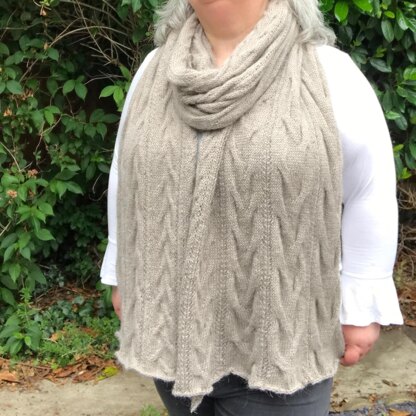 Because this pattern has a lovely sense of motion which is created by the graduating sections of the collection's signature Sand Cables. This soft, meandering stitch pattern is full of life and the increase in cable size seems to accentuate the feeling of drift across the scarf design.