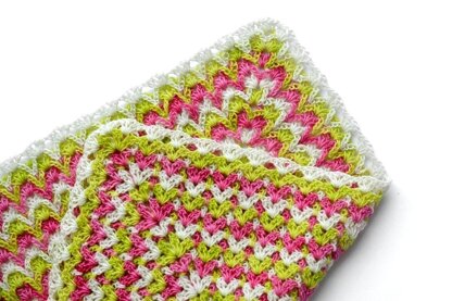 The blanket can be crocheted as a single motif to create a simple and quick baby gift. Smaller motifs can also be turned into coasters, potholders, pillow covers, or chair cushions. For a larger-size afghan, several motifs are joined together. This is a great project to use all those leftovers and create something bright and cheerful.