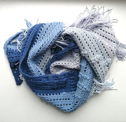 The inspiration for the Bari Shawl came from the yarn - seeing the ombre yarn color pack I momentarily knew how it should look like. I was even happier when I received the yarn - the quality of the yarn was giving me more ideas to add to the design.