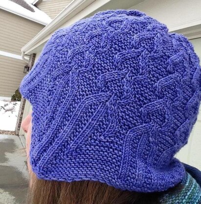A warm, squishy aviator-style hat with knit-as-you-go earflaps formed by short-rows. This is the "At Rest" version with garter ribbed brim and wings curled as if at rest. The stitch pattern is written and charted.